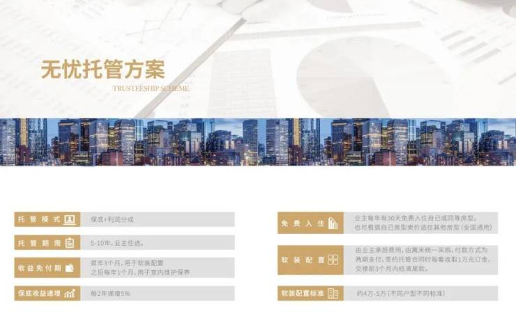 项目入驻寓米酒店管理公司,国际大牌实力有保障,由专业团队运营全方位托管,收益稳健增长,保底收益即可达140元㎡,投资回报率高达5.61%。