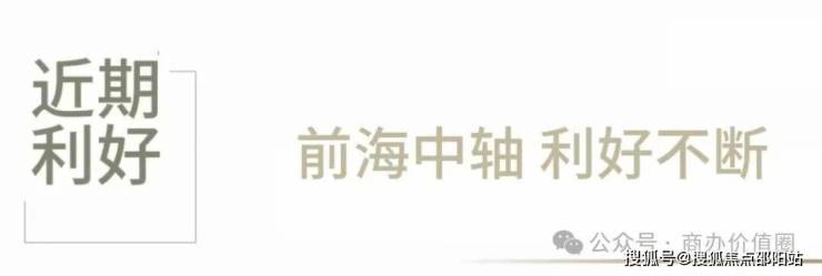 1.前海湾中轴c位:”前海+宝中“双中心辐射,宝安区政府西南侧,独占130米长稀缺头排地段,是对标世界湾区的不可再生资产;