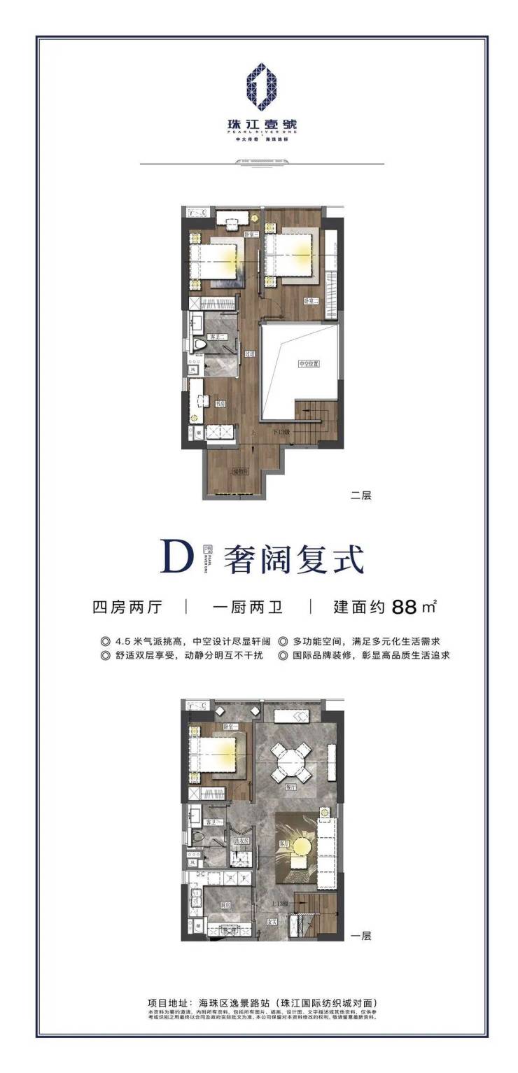 珠江壹号主推49-95㎡时尚LOFT空间,4.5米层高,使用率非常高,买一层可享受两倍的奢阔空间。而且户型多样,总价可控,能满足各阶段的住房需求。