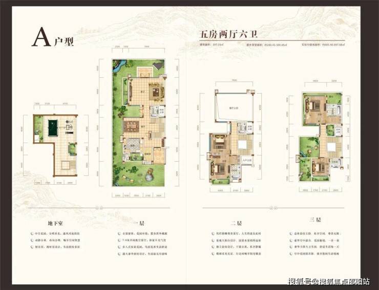 (A户型)397.03㎡五房两厅六卫,花园面积约230-330㎡。