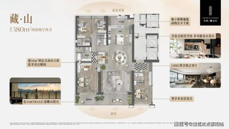 主打265-380㎡四房大平层,是东城近10年来唯一的200平以上纯粹大平层产品,厨房~餐厅~客厅,被10米跑道式阳台连成一线,揽天光云影为近邻,呈现出的与世界际会窗前的生活方式。