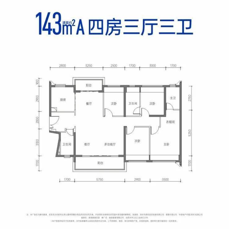 建面约143㎡四房三厅三卫