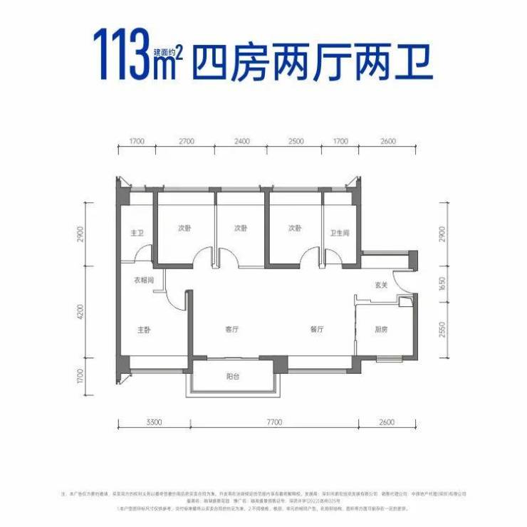建面约113㎡四房两厅两卫