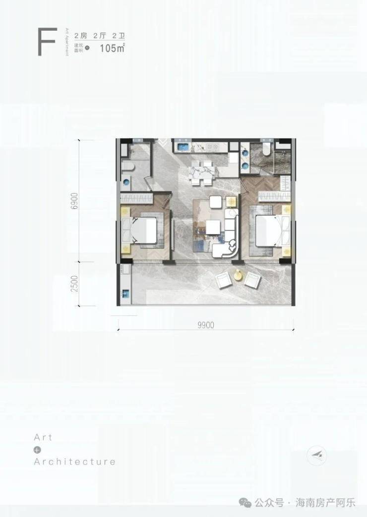 F户型/2房/2厅/2卫/105㎡