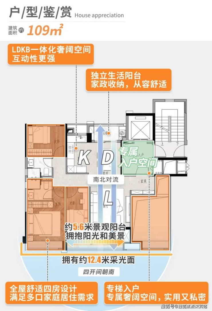 得益于“结构连板”设计,建面约109平能做到4房,实用性拉满。