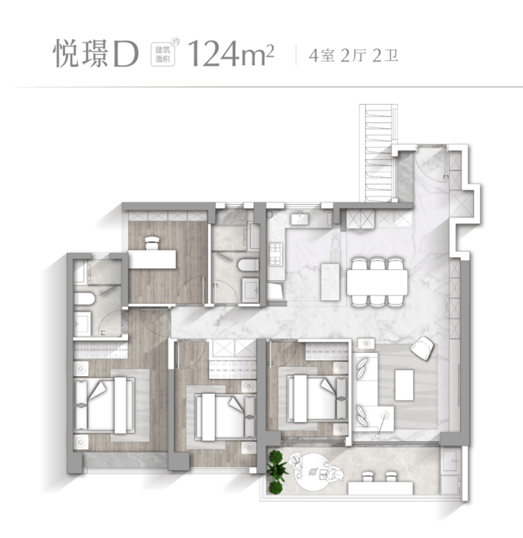 厅卧空间灵活改造约8.4米双面宽阔景阳台,匹配全生命周期使用