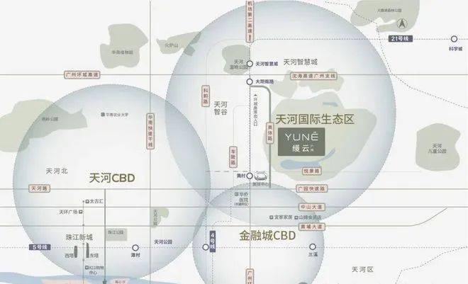 择址天河国际生态区核心,与两大经济引擎天河CBD和金融城CBD,保持约6公里的直线距离。