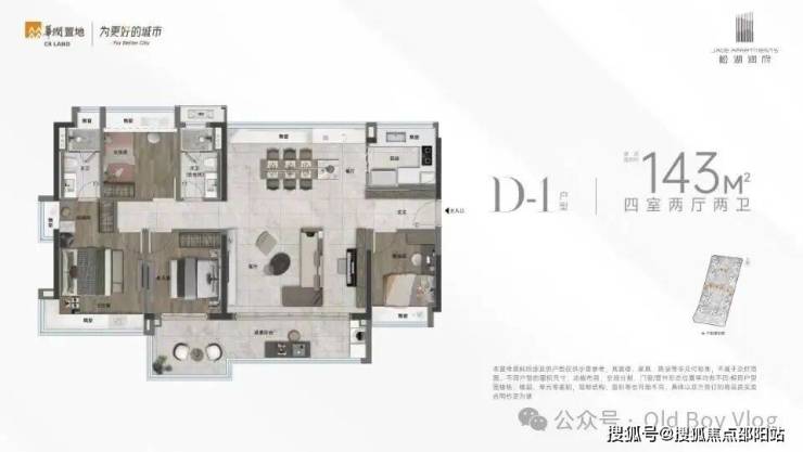 ✅【约8.6m阳台 中轴园景 南北大通厅户型 】D-1户型 143㎡ 四房两厅两卫