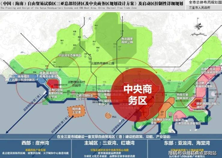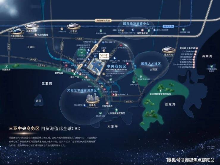 中央商务区,雄踞三亚核心位置,同享城市核心位置、城市CBD、自贸港重点产业园区三大核心要素,规划自贸港总部经济及中央商务核心功能,奠定中国对外经贸门户地位。