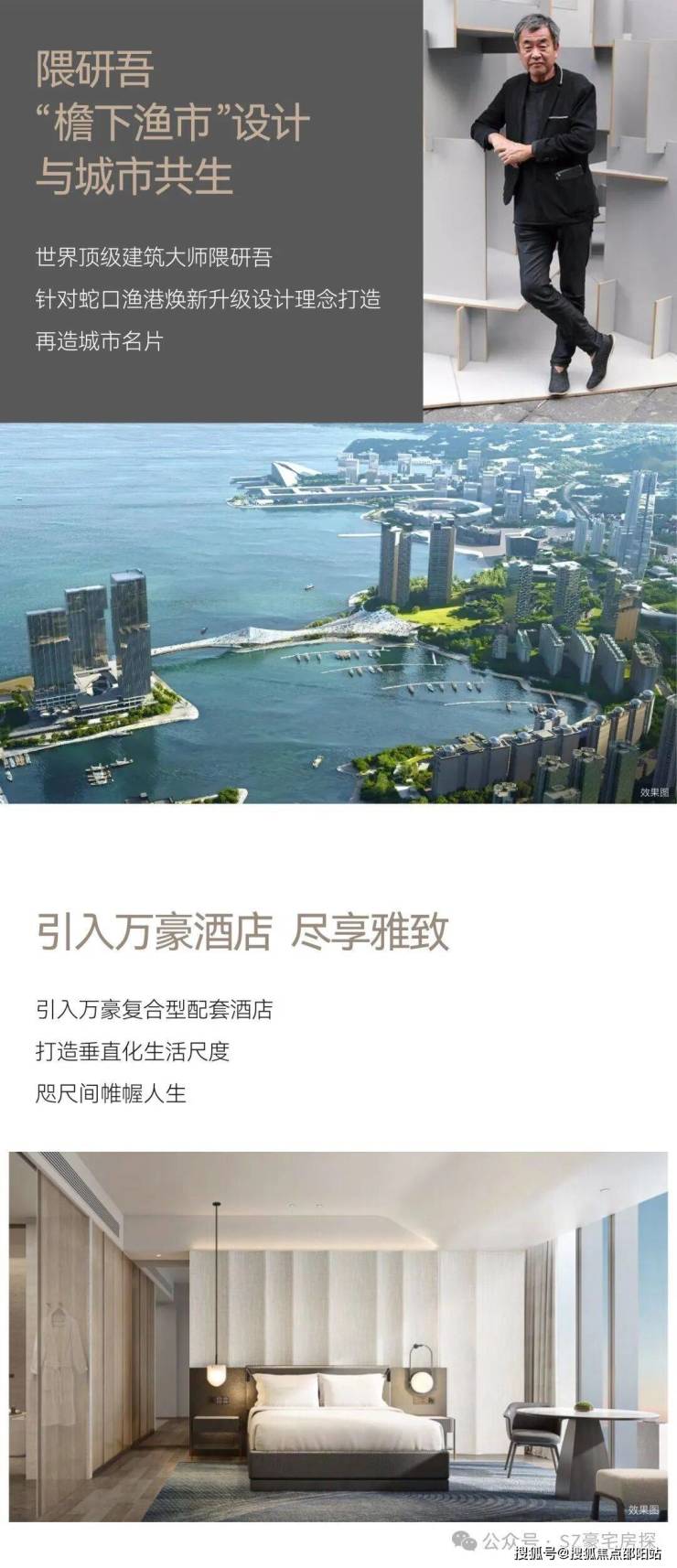顶级配套:自带约2.6万㎡商业,含悬空无边际海景泳池、高端会所等;周边有海上世界、K11等商业,医疗、教育配套完善。