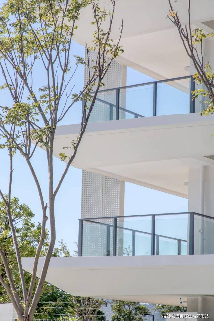 横向线条的重复强调,结合玻璃栏板的质感变化,使建筑与环境进一步融合,打造出与碧海蓝天交相辉映的住宅建筑。