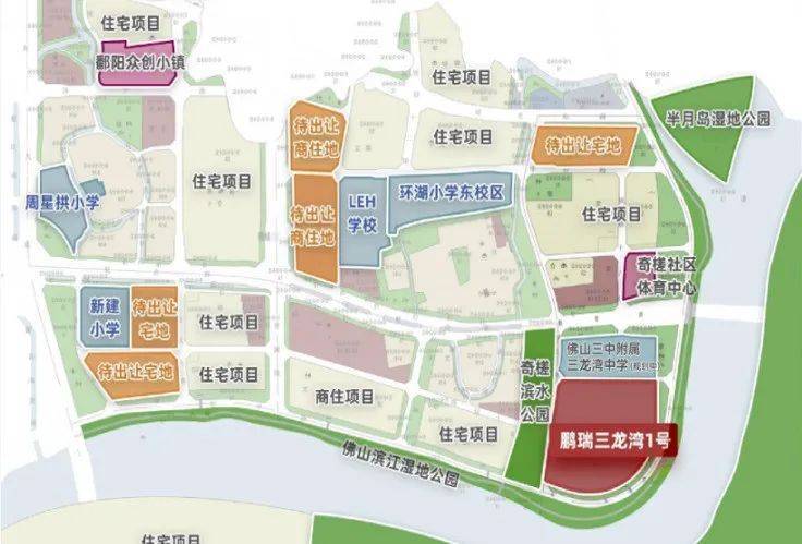 目前,片区周边已有环湖小学(2700个学位,按照省一级学校)、奇槎中心小学、英国LEH国际学校等配套设施。华英学校、佛山实验学校公布了最新的招生方案,鹏瑞三龙湾1号也囊括在内,整个亚艺-奇槎板块的教育资源,直接冲上禅城最TOP梯队。
