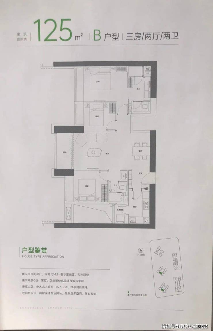 B 户型:14.1m 南向面宽,全南观景,主卧带步入式衣帽间