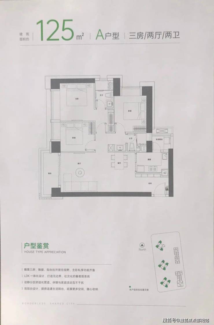 建面约 125㎡A 户型瞰景三房二厅二卫
