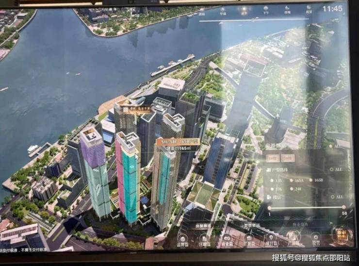 共5栋楼,总高56-58层,首推1/5栋,1栋57层,43层以下是两套176方的,45-57层是一套248方的,5栋是塔楼,一户139,两户165,超新规产品,得房率据说有130%。