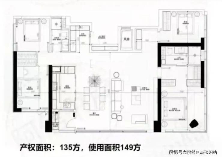 项目规划主打5栋165-250㎡大平层产品。以约165平为例,是广州唯一的4+2房3卫双主套布局,客餐厅空间达到约60平,拥有近19米四开间观江面,比同类200平的瞰江产品还要牛。