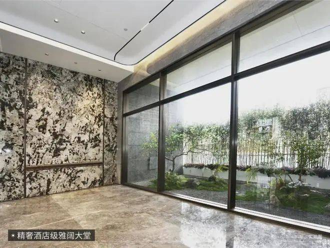 宏发做的房子品质素来比较在线,项目入户大堂以精奢酒店风为主,采用大面积的透光玻璃和石材,实地看档次不错。