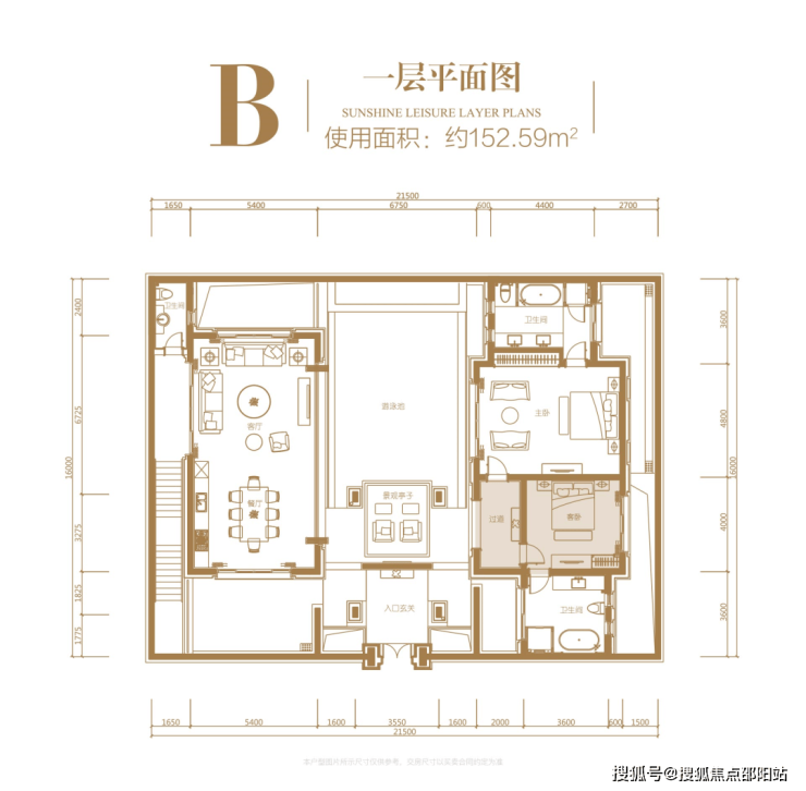 一层:使用面积约 152.59㎡,