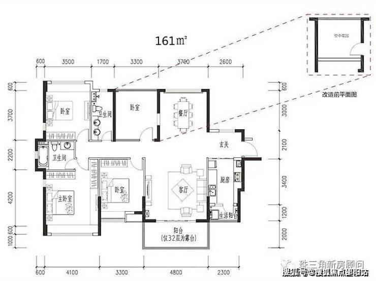 洋房:14 号、15 号、17 号住宅楼,均为 32 层,以 142-192㎡高层经典户型为主,户型方正,南北通透,均为 “N+1” 高赠送设计。目前主力在售约 157-171㎡臻装四房。