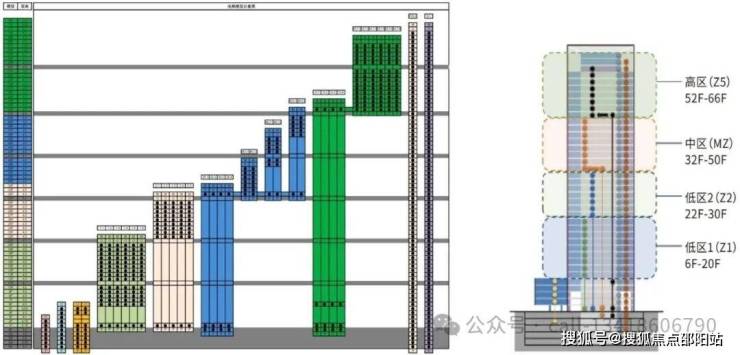 💎四大堂设计,除首层大堂外,中区32F、高区52F及塔冠位置均设有空中大堂