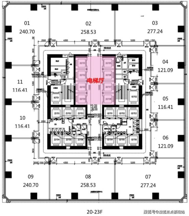 中庭楼层:24-40F,(每两层一个中庭、中庭9米挑空)