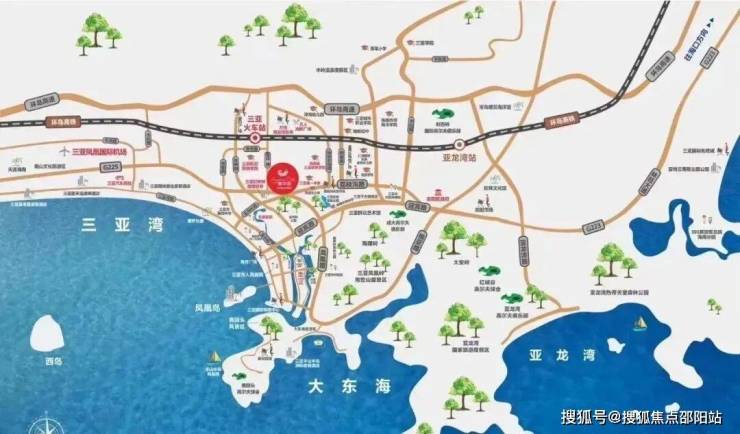 【交通配套】:地段绝佳,城市核心区。凤凰路的中段,项目与三亚湾直线距离不到5公里。3分钟可达三亚高铁站、10分钟可达三亚绕城高速、15分钟可达三亚凤凰国际机场。新修建的轻轨电车紧邻项目,步行3分钟即可到达凤凰路站乘坐。