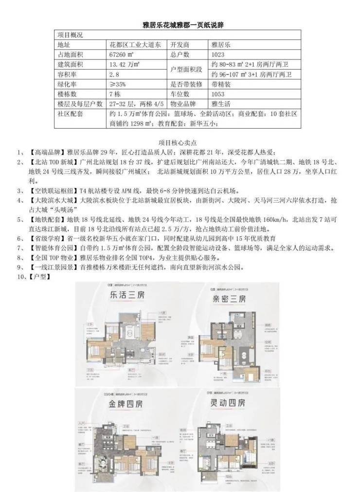 四、项目自身配套:◆雅居乐花都第7作 活力人居新体验◆ 雅居乐深耕花都21载,始终秉承“一生乐活”理念,携全新升级乐活作品,致敬花都。雅居乐花都第7作—花城雅郡,即将震撼面世。