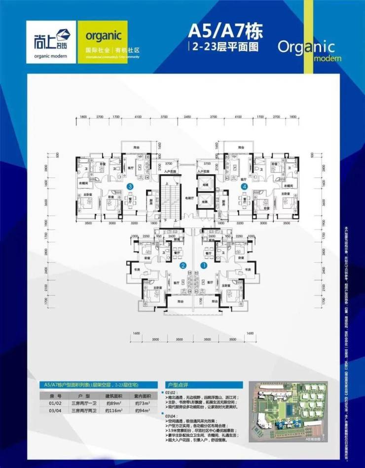 A区(一期,2013年收楼):商铺+洋房+别墅组合,共7栋楼,临街底层1-3楼为商业街。其中4栋属于高楼层住宅,共为29楼,两梯6户或2梯10户。主推中小户型,面积为56-77㎡米之间, 但空间实用率偏低。103-120㎡三房户型最为实用。四房或以上大户型房源数量不多。
