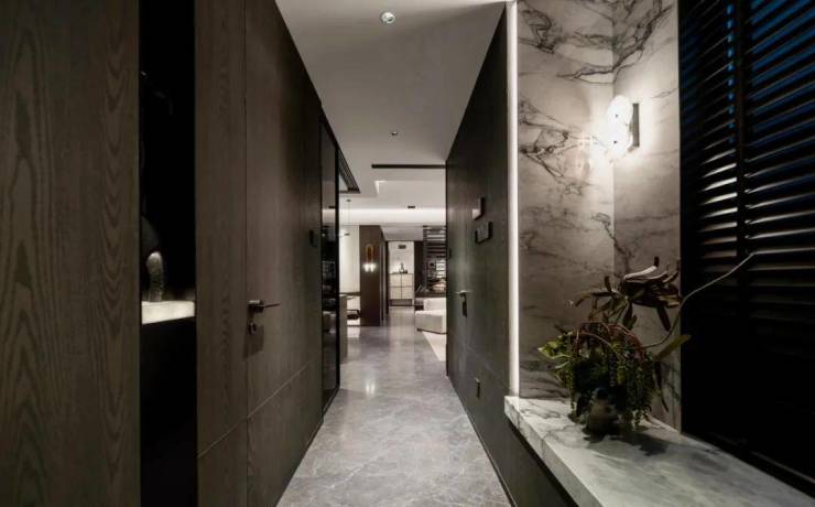 客厅面宽达到4.4米,尺度比市面上大多数140㎡户型都要大,如果不需要那么多房间,也可以将客厅与次卧打通,获得约7.4米长的超大横厅,或者也可以参考样板房设计,将其布置成家庭的私享影音空间。