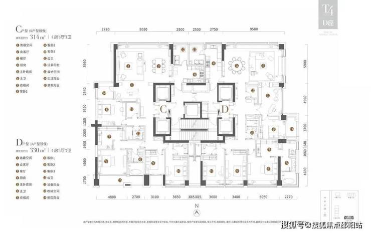 T4栋为314平和330平4房3厅3卫户型