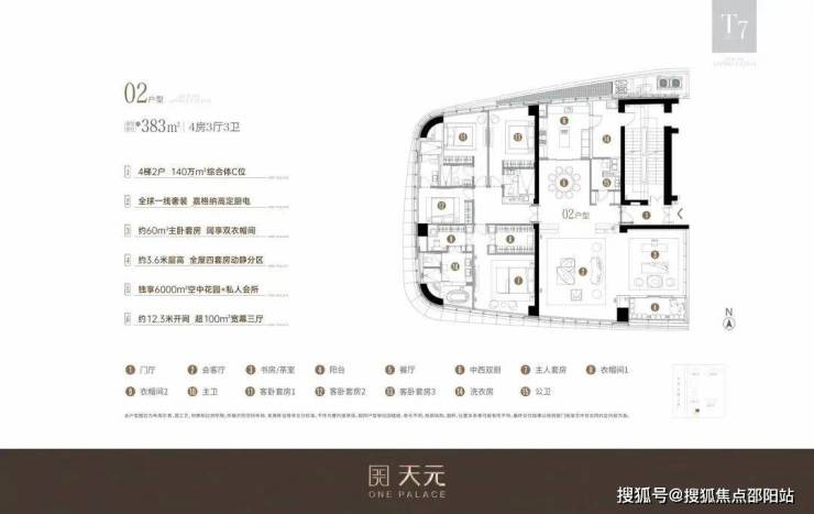 T7王座总裁公寓 【T7-01户型鉴赏】约393㎡四房三厅六卫
