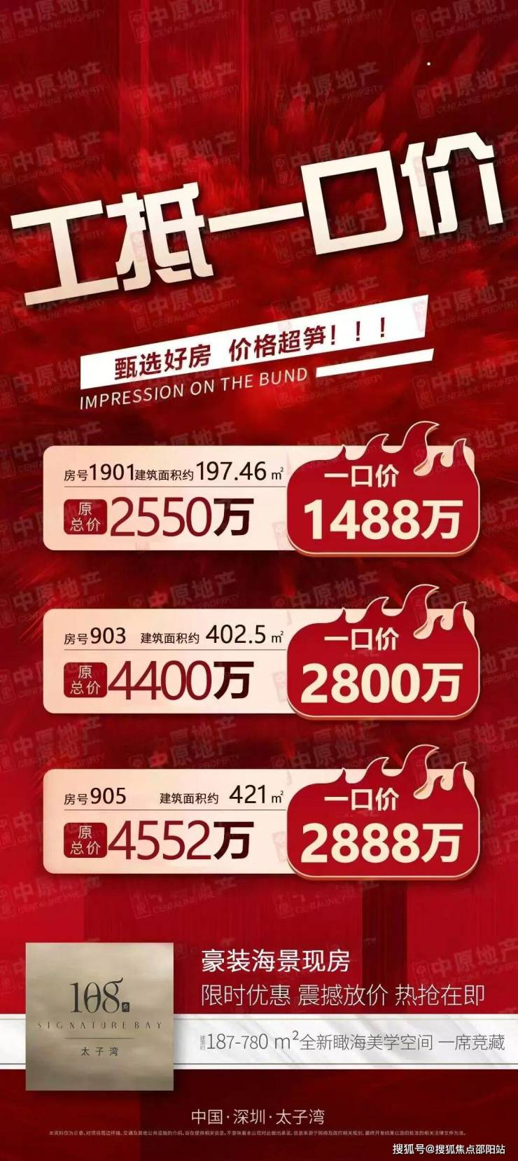 ⭕太子湾108府售楼中心热线:400-9616-219(开发商直连,解答项目规划、购房政策等问题)由深圳骏盟九星控股有限公司(招商地产)匠心打造,项目占地1.24万㎡,总建筑面积约4.2万㎡,规划108席奢阔府邸。户型涵盖187-197㎡三房、228-264㎡3+1房、380-420㎡4+1房,以及720-970㎡云端大平层,满足高阶生活想象。配备190个尊崇车位,梯户比3梯4户,以1:1.75的黄金比例,礼遇从容归家体验。现楼交付,4.5米层高商办公寓,70%实用率,21层地标建筑傲立湾区。水电为民用标准,生活成本更优渥。