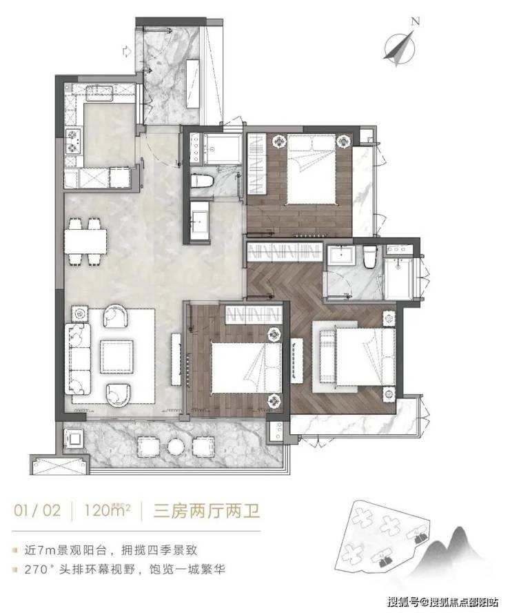 【A1-01/02】 建筑面积约120㎡三房两厅两卫