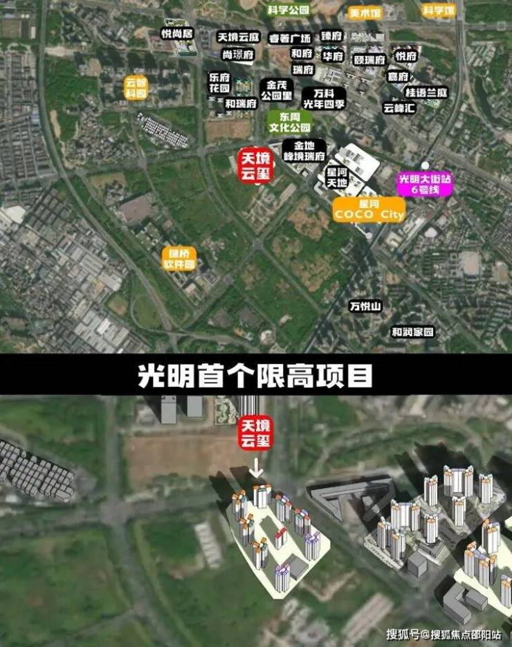 该地块位于光明街道核心居住区,正对华夏中学,斜接金地峰境瑞府,与网红新盘星河天地仅一路之隔。该宗地块也是近年公布拟出让宅地清单中,面积最大的一宗,区位优势、配套资源较为突出。