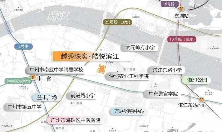 项目其实不是很近地铁站,最近2号线市二宫站步行距离大约1.2公里,有点不上不下的距离,最好是电动车需要接驳,一站江南西/海珠广场,2站昌岗/公元前,东侧还有10号线滨江东站在建中
