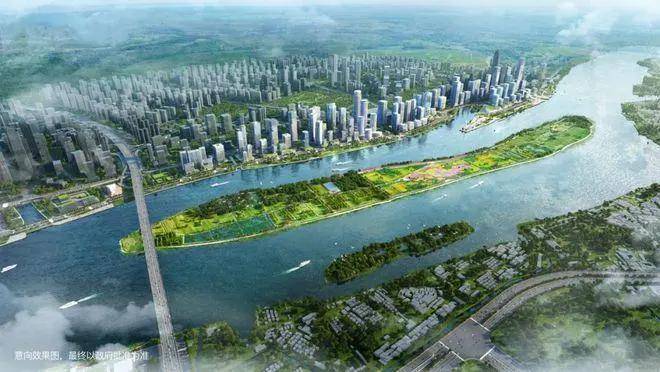 金融城东区对岸是约1300亩北帝沙岛,对标多伦多湖心岛、纽约总督岛,将打造广州独一无二的都市江心公园。