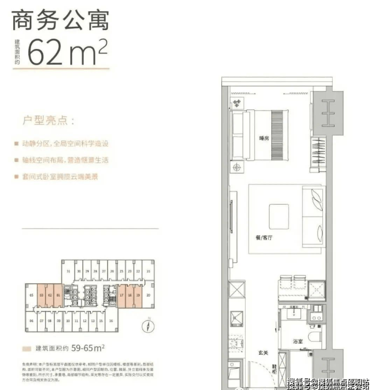 【层高】:平层3.4m、Loft4.5m;使用率:平层70%、Loft120%,