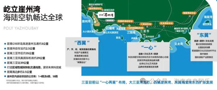 明确规划:在2012年-2022年,三亚市总规划中,明确指出崖州湾是三亚“一心两翼”发展结构中的西部核心发展区域。崖州湾科技城是海南自贸港14个产业园之一,作为海南自由贸易区建设先行引领区,以三城一港一基地为战略布局发展崖州。以深海、南繁、大学城三城建设为抓手着重规划建设布局崖州湾科技城。