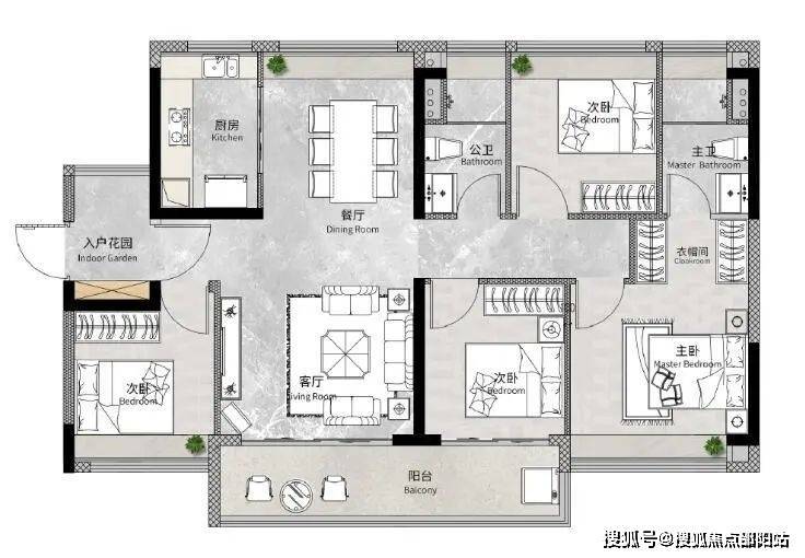 阳光开间:南向四开间,约12.3米宽屏采光,博得日光宠爱