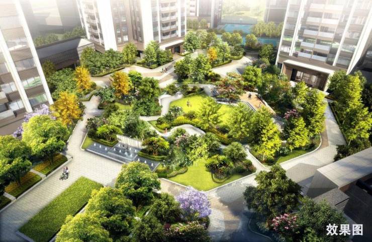 【园林雅境】园艺大师严苛甄选树种,全冠移植;集合多元景观园林、中心阳光草坪,打造多元架空层,满足业主休闲会客、游玩等空间,让居者享受惬意亲子与专属邻里圈层时光