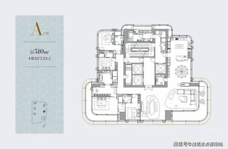 一层一户,纯粹顶豪,独享约510㎡的恢弘空间。