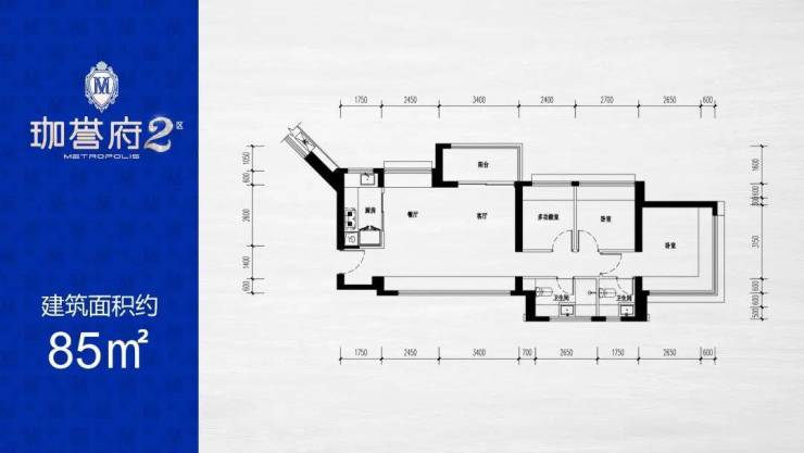 约85㎡( 横厅)三房两厅两卫