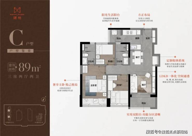 【89㎡三房二卫】