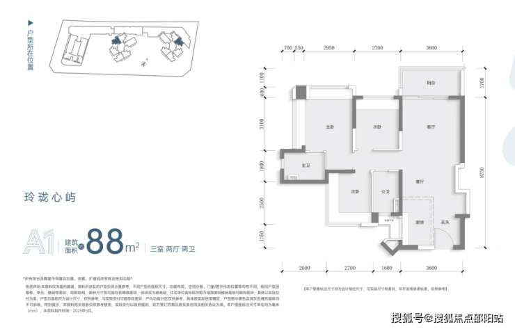 客厅开间3.6米,厨房连通客餐厅,主卧双飘窗。