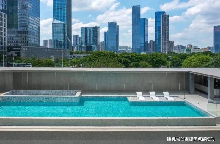 云端泳池:承载全龄段生活意趣,一番畅游后大人们还可到一旁的“品蘭荟”水吧品味香醇特调美酒。