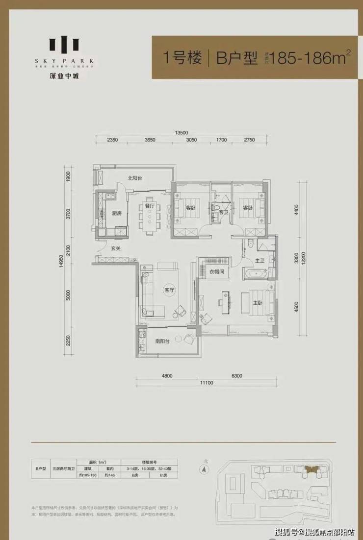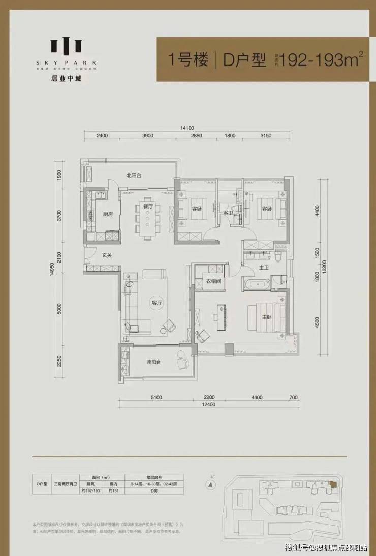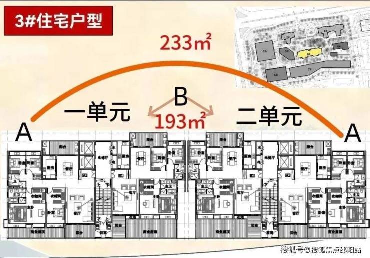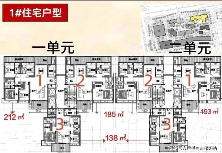 住宅414户,主力面积133-233㎡,梯户比2T2-2T3
