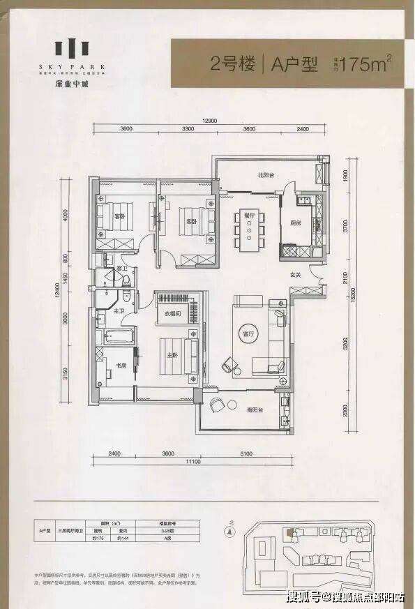 177㎡三房:可改四房,动静分区,低区临近商业略影响采光;