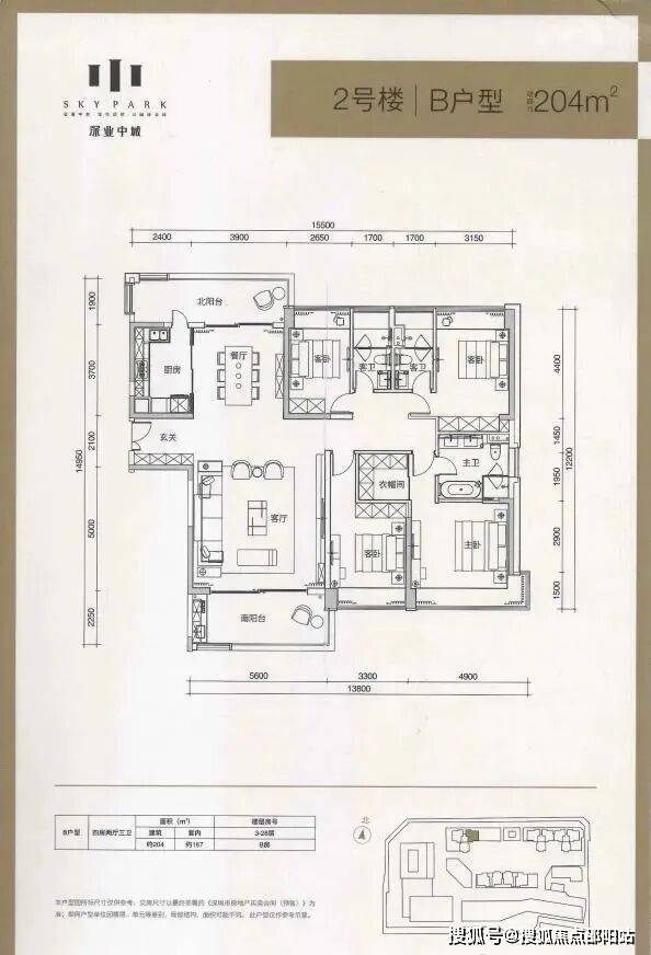 206㎡四房:格局周正,双卧带独卫,客厅开阔,视野佳;