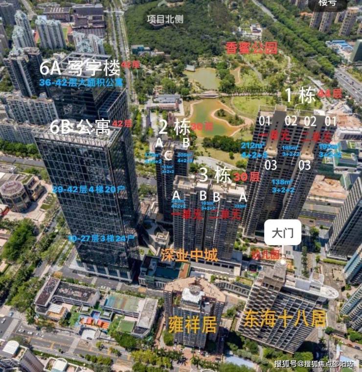【产品】香蜜湖近五年唯一新豪宅,户型涵盖132-233㎡,适配不同家庭结构。高区视野开阔,可览香蜜公园与深圳湾双景,低区部分略有遮挡。