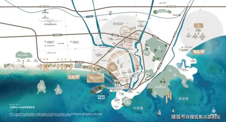 中旅·三亚蓝湾绝版亲海+双轴核心+凤凰岛对望,对标法国蔚蓝海岸、澳大利亚黄金海岸、迪拜棕榈滩。该片区定位为大三亚湾海上门户、国际热带滨海风情城市型旅游目的地、全天候“不夜城”,将打造成以国际艺术海岸为特色、面向全球的活力中心和南海门户“凤凰海岸”。